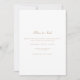 Esta elegante tarjeta de invitación para bodas doradas y blancas de escritura incluye escritura moderna y texto limpio para un diseño blanco simple y elegante que le encantará. Añade texto personalizado para proporcionar cualquier información adicional necesaria para tus invitados. Siéntase libre de enviarme cualquier pregunta relacionada con el diseño - ¡estaré encantado de ayudar!