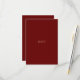Esta elegante escritura dorada y tarjeta rsvp de color rojo profundo presenta escritura moderna y texto limpio para un diseño rojo profundo y sencillo que le encantará. Añade texto personalizado para proporcionar cualquier información adicional necesaria para tus invitados. Siéntase libre de enviarme cualquier pregunta relacionada con el diseño - ¡estaré encantado de ayudar!