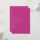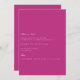 Esta elegante tarjeta de la fiesta de compromiso blanco y magenta de guiones presenta escritura moderna y texto limpio para un diseño magenta simple y elegante que le encantará. Añade texto personalizado para proporcionar cualquier información adicional necesaria para tus invitados. Siéntase libre de enviarme cualquier pregunta relacionada con el diseño - ¡estaré encantado de ayudar!