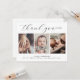 Esta hermosa foto gracias, foto bebé tarjeta de invitación es ideal para cualquiera que quiera agradecer a los invitados en su ducha de bebé por los regalos, el amor y el apoyo que han recibido. El diseño moderno y elegante tiene un estilo minimalista y cuenta con tres fotos verticales de personalizable colocadas unas al lado de otras y una tipografía elegante (escritura a mano y serif) para su información. En la parte de atrás está tu mensaje de agradecimiento de personalizable. Utilice el botón "Personalizar" para reemplazar fotos y editar texto.