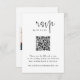 Tarjeta rsvp de estilo minimalista en blanco y negro con un elegante guión moderno de caligrafía. El código QR se puede escanear para acceder al sitio web del boda. La parte trasera tiene un lugar para tu foto con un borde gris claro y el nombre de la pareja debajo o puede dejarse en blanco.