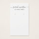 Elegante tarjeta de portaesquinas con tu nombre con perchas en una caligrafía manuscrita negra junto con tu lema sobre un fondo blanco. El reverso tiene su información de contacto. Estas sencillas y femeninas tarjetas de presentación son perfectas para un negocio de joyería hecha a mano.