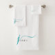 Un moderno y elegante monograma verde azulado de moda con un dramático guión inicial con swashes y su nombre completo en un moderno tipo serif. Sencilla elegancia.