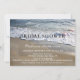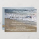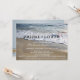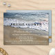 Una elegante pero sencilla invitación a la ducha nupcial con olas en la playa en la parte delantera y un polvoriento diseño azul en la parte trasera.
