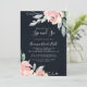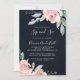 Este elegante sorbo floral rosa de color rosa y la invitación a ver es perfecta para una reunión moderna con el fiesta. El diseño presenta rosas de color rosa a mano y peonías con hojas verdes y grises de fondo azul oscuro, inspirando la belleza natural.