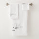 Con una tipografía moderna y elegante, este juego de toallas en blanco y negro de moda se puede personalizar con su nombre y fecha especial. Diseñado por Thisisnotme©