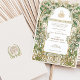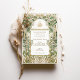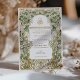 Esta exquisita suite de invitados a la boda combina el arte tradicional islámico con un toque moderno. La fachada de la invitación presenta un diseño Art Nouveau intrincado y florido, dominado por los tonos verde salvia, oliva, crema y adornado con elementos de Relieve metalizado dorado que le confieren un toque lujoso. La parte posterior revela una estética minimalista con un sutil fondo crema, mostrando un monograma en verde salvia, oliva y un toque de amarillo mostaza. Inspirada por la belleza atemporal de la naturaleza y la sofisticación de la caligrafía islámica, esta invitación es perfecta para parejas que buscan honrar su herencia mientras celebran su unión con estilo.
