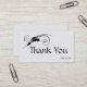 Elegante Swirl Gracias tarjeta de visita Tres líneas de texto editables: Eslogan, fecha y tipo de evento.
