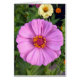 Elegante tarjeta blanca de flores rosadas de Zinni