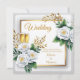 Elegante tarjeta Boda de oro de rosa blanca y cham