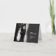 Tarjeta de agradecimiento de hermosa foto de boda, hecha con una fotografía de la boda, en el lado izquierdo de la tarjeta. Gráficos de una elegante cinta de satén blanco, con gráficos de decoraciones de diamantes brillantes, divide la tarjeta entre la fotografía y el hermoso fondo de damasco negro, en el lado derecho. Texto en letra cursiva blanca dice Gracias, en el lado derecho de la tarjeta. Personalice agregando su propio texto y su propia foto de boda. Qué hermosa manera de enviar sus agradecimientos, después de la boda.