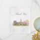 Esta elegante tarjeta de agradecimiento de boda presenta una suave ilustración de acuarela de una capilla de piedra atemporal y un cerezo de primavera, combinada con tipografía de letra cursiva refinada para una presentación clásica y significativa. Diseñada en formato vertical con generoso espacio en blanco, la parte delantera mantiene el mensaje simple y sincero, mientras que el interior proporciona amplio espacio para una nota personal. Perfecta para bodas tradicionales, de jardín, capilla o románticas, esta tarjeta ofrece una forma elegante de expresar gratitud con sofisticación discreta.