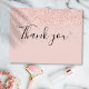 Una tarjeta postal de agradecimiento de negocios con escritura en rosa dorado brillante que incluye un corazón plateado. Una forma perfecta de decir gracias a sus clientes y clientes. Este diseño elegante es ideal para una amplia gama de negocios, incluyendo spas, salones, estilistas de cabello y maquillaje, boutiques, esteticistas y floristas.