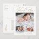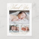 Tarjeta postal de agradecimiento para bebé con elegante caligrafía y 3 fotos que incluye tres fotos del nuevo bebé, junto con elegante caligrafía, y todos los datos del bebé. La parte trasera tiene espacio suficiente para tu nota de agradecimiento.