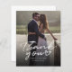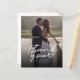 Una manera grandiosa y reflexiva de agradecer a tus amigos, familia y compañeros de trabajo que te honraron su presencia en tu día de boda con esta moderna foto gracias a las cartas con la mano de guion con "gracias" y un corazón de amor.