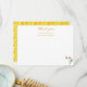 Una bonita tarjeta plana de agradecimiento para despedida de soltera con una sola flor de margarita y una abeja revoloteando. "gracias" está en tipografía de caligrafía moderna amarilla y un patrón de panal de abeja acuarela en el reverso.