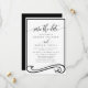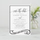 Anuncia tu próximo matrimonio con estilo con esta elegante tarjeta de ahorro de fecha en negro y blanco. Con una fuente de escritura clásica y un diseño limpio y moderno, esta tarjeta es perfecta para establecer el tono de tu día especial. Personalízala con tus nombres y detalles de la boda para crear un hermoso recuerdo para tus invitados.