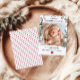 Anuncie su pequeño milagro con estilo con esta elegante tarjeta de nacimiento enmarcada por ramas de pino dibujadas a mano y acentos festivos. Creado para mostrar la foto más dulce de tu recién nacido, este diseño se siente moderno y atemporal, lo que lo hace un sake que tus seres queridos apreciarán.