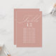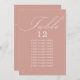 Tarjeta de asiento de mesa Rosa Gold boda con caligrafía elegante y tipografía editable. Diseño minimalista sencillo y moderno que se adapta a los colores bodas. La tabla está escrita a mano y la plantilla está lista para que edite el número de tabla y la lista de asientos de invitados.
