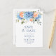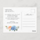 Para una mayor personalización, haga clic en "Personalizar esta plantilla", luego en "Editar con la herramienta de diseño". Plantillas de boda elegantes y fáciles de usar, más artículos disponibles en la tienda (invitaciones, confirmaciones de asistencia, tarjetas de agradecimiento, papelería y decoración). Si necesita ayuda o artículos coincidentes, por favor contácteme. Tarjeta postal de aviso de boda con hortensias azules.