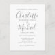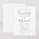 Con nombres de estilo de firma destacados, esta elegante tarjeta postal de invitación de boda en gris y blanco se puede personalizar con su información en elegante letra gris. Diseñada por Thisisnotme©