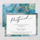 Si tus planes de boda han cambiado inevitablemente, esta tarjeta artística podría ser la opción única para ti. Con una fuente de caligrafía moderna, el encabezado dice "Pospuesto". El borde de la parte delantera y la parte trasera de la tarjeta están cubiertos con una pieza de mi "arte líquido" abstracto que presenta una técnica lograda mediante el uso de tintas "alcohol inks" en color turquesa acentuadas con dorado metálico. El estilo a veces se confunde con acuarela. Los detalles de la parte delantera también están compensados por un borde doble dorado que se superpone a un rectángulo blanco. Utiliza los campos de la plantilla para agregar tus datos personales. // 137 //