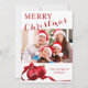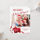 Elegante Tarjeta de Navidad Foto Familiar. Envíe sus cálidos deseos de vacaciones con esta elegante tarjeta de fotos de Feliz Navidad. Con un diseño sencillo de adornos de Navidad rojos adornados con cinta roja. La tarjeta incluye caligrafía de guión y su foto muestra a su querida familia. El adorno de navidad realza el año. Este diseño atemporal capta la calidez de esta temporada de vacaciones.