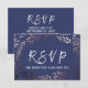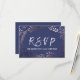 Esta elegante tarjeta de respuesta de sitio web de boda de oro rosa y azul marino es perfecta para una boda elegante. El diseño presenta un impresionante marco frondoso de color rosa claro sobre un fondo azul oscuro y está combinado con una fuente cursiva deslumbrante. Personalice la tarjeta de respuesta en línea con su RSVP por fecha y dirección del sitio web de la boda. Si sus invitados no necesitan una contraseña del sitio web, puede reemplazar el texto con un breve mensaje para sus invitados o un método alternativo de RSVP.