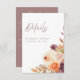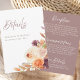 Complete su suite de invitados a la boda con esta tarjeta de recepción y detalles de diseño. Con suaves flores de acuarela en tonos de melocotón, melocotón y ciruela, junto con una tipografía de escritura moderna, este prospecto ofrece a los huéspedes todo lo que necesitan saber: desde información de recepción hasta alojamiento y sitio web de su boda.