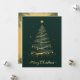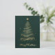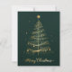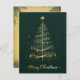 Esta elegante tarjeta de felicitación para Navidades presenta un árbol de Navidad dorado muy bien diseñado con un fondo verde oscuro. El árbol está adornado con delicados adornos dorados y coronado con una estrella brillante. El diseño es muy complejo, con líneas doradas y destellos brillantes que crean un ambiente festivo y lujoso. Al final de la tarjeta, las palabras "Feliz Navidad" están escritas en un elegante guión dorado, añadiendo un toque cálido y alegre al diseño general. Esta tarjeta es perfecta para enviar sus deseos de vacaciones a amigos y familiares, capturando la esencia de los Navidades con su sofisticado y festivo aspecto. La parte trasera de la tarjeta sigue la temática festiva con un diseño de estilo vintage. Tiene una textura de papel envejecido, bordeada por ramas de pino verde. El centro está en blanco, lo que da espacio para escribir un mensaje personal, añadiendo un toque de nostalgia y encanto.