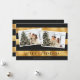 Foto moderna en negro y oro. El efecto Relieve metalizado dorado sólo se simula en las obras de arte. Personalice fácilmente esta elegante tarjeta de vacaciones con fotos y nombre de familia.