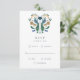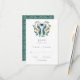 Esta elegante tarjeta de gabinete RSVP con opciones de comidas de la colección Gatsby presenta flores de estilo art deco dibujadas a mano en tonos azul marino, verde y turquesa con un toque de color mostaza amarillo.