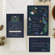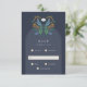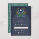 Esta elegante tarjeta de gabinete RSVP con opciones de comidas de la colección Gatsby presenta flores de estilo art deco dibujadas a mano en tonos verde y turquesa con un toque de amarillo mostaza.
