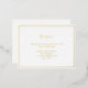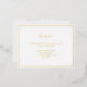 Esta elegante y moderna tarjeta de recepción de Relieve metalizado dorado es perfecta para su moderno boda minimalista. Este diseño presenta una hermosa caligrafía de Relieve metalizado dorado con un fondo blanco brillante y neutro que combina con el boda tradicional clásico o el minimalista boda boho en primavera, verano, otoño o invierno. Por favor, siéntase libre de contactarnos con cualquier pregunta sobre este diseño, nos encantaría ayudarle a hacer que su boda sea exactamente como siempre soñó ser.