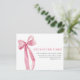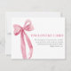 Mejore su evento con nuestra elegante tarjeta Minimalista Rubor Pink Bow. Esta sofisticada tarjeta presenta un sutil diseño de arco rosado que le aporta un toque de refinamiento a sus invitaciones, regalos o favores. Su estilo minimalista y elegante asegura la versatilidad, por lo que es perfecto para varias ocasiones, como bodas, duchas de novias o duchas para bebés. Incluya esta tarjeta de gabinete para transmitir información adicional o mensajes sentidos con un encanto subestimado.