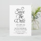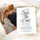 Esta elegante tarjeta de guardar la fecha presenta un clásico fondo blanco con letra manuscrita "Guardar la Fecha" y tipografía clásica en negro. En la parte posterior está su foto de marco completo (también conocida como "sangrado total"), que también se puede eliminar si se desea. ¡Este diseño causa una primera impresión elegante y chic para su boda! El fondo, el texto y el saludo son personalizables.