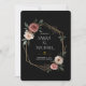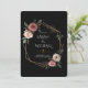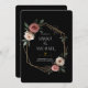 Un diseño de bodas de lujo con un fondo de textura oscura con un marco geométrico dorado y delicados rosas de acuarela con un rosa rosa, blanco y polvoriento. La elegancia de la vegetación complementa a los florals, creando una estética sofisticada y romántica. Perfecto para parejas que buscan un estilo de tarjeta boda único y moderno. Personalizable completo para agregar nombres, fecha y detalles del boda.