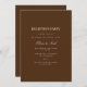 Esta elegante tarjeta de invitación de recepción blanca y marrón de guiones modernos y texto limpio para un diseño marrón simple y elegante que le encantará. Añade texto personalizado para proporcionar cualquier información adicional necesaria para tus invitados. Siéntase libre de enviarme cualquier pregunta relacionada con el diseño - ¡estaré encantado de ayudar!
