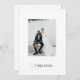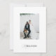 La elegante tarjeta de Invitación Minimalista para Bodas es una manera atemporal y sofisticada de compartir la alegría de su reciente unión con amigos y familia. Esta hermosa tarjeta presenta una sola foto delicadamente enmarcada por un generoso espacio blanco, lo que permite que tu momento especial ocupe el centro del escenario. El diseño de la tarjeta está marcado por un toque de elegancia con un guión sutilmente florecido en la palabra "the" y el nombre de su familia, creando una estética clásica y refinada. El enfoque minimalista garantiza que tu preciada foto se muestre con gracia y estilo. Gire la tarjeta y encontrará un espacio dedicado en la parte posterior para un mensaje más extenso. Esta característica reflexiva te permite compartir los detalles de tu historia de amor y expresar tu gratitud a los seres queridos que han sido parte de tu viaje. Captura la esencia de tu unión con la Tarjeta de Invitación Boda Minimalista Elegante y crea un recuerdo duradero que combina maravillosamente simplicidad, elegancia y sentimientos sentidos para compartir la alegría de tu día de bodas.