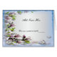 floral de color púrpura con fondo azul y mariposa. Infórmele a sus huéspedes dónde van a sentarse con esta tarjeta de bonito. Personalice la tarjeta cambiando el texto en los campos proporcionados delante y atrás. Puede cambiar el estilo de fuente, el tamaño, el color, así como el tipo y estilo de papel.