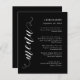 Crea una impresión inolvidable en la recepción de tu boda con elegantes tarjetas de menú boda de guiones para los platos, diseñadas para eventos elegantes y de gama alta. Estas tarjetas de menú son perfectas para bodas de corbata negra formales, lujosas recepciones en el salón de baile, románticas ceremonias en el jardín y bodas de gran destino. Con una intrincada tipografía de guiones, añaden un toque sofisticado a la refinada configuración de las mesas, complementando una decoración elegante y esquemas de colores de gama alta. Ya sea que esté organizando una reunión íntima o una espléndida celebración, estas tarjetas de menú proporcionan una hermosa manera de mostrar su menú mientras realzan el encanto general y la elegancia de su día especial.