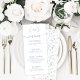 Descubra su boda tablescape con estas elegantes cartas bodas rústicas, decoradas con gusto con delicadas flores azules. Con un sofisticado texto azul minimalista, estos menús le dan un toque botánico refinado a su boda de otoño o invierno. Ideal para celebraciones rústicas, de jardín o de temática floral.