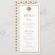 Refinada e intemporal, esta carta boda tiene un elegante acento dorado y un diseño clásico. Ideal para bodas costeras o de destino con un tema sofisticado. Personalice con sus nombres y selecciones de menú para un detalle de mesa pulida.