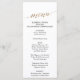 Esta elegante carta de oro y caligrafía negra es perfecta para un simple boda. El diseño neutro cuenta con una tarjeta minimalista decorada con una romántica tipografía de Relieve metalizado de imitación de oro. Este menú se puede utilizar para la recepción de bodas, la cena de ensayo o cualquier evento. Nota: Este diseño no tiene Relieve metalizado oro real. Es un gráfico de alta calidad hecho para parecer un Relieve metalizado dorado.