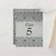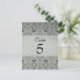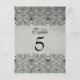 Esta elegante postal de número de mesa de boda vintage tiene un borde negro de damasco en la parte superior e inferior con un fondo gris plateado desvanecido. En el centro, se puede personalizar fácilmente el número de tabla. Esta es una hermosa tarjeta boda número de mesa que sería genial para todas las temporadas especialmente para otoño/otoño e invierno.