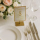 Añada un toque de sofisticación a su recepción de bodas con este elegante diseño de tarjeta de mesa de lujo. Con un estilo refinado con delicados acentos dorados y un diseño limpio e intemporal, orienta perfectamente a los huéspedes hacia las mesas que les han asignado, mientras realza la decoración de las mesas. Ideal para bodas, banquetes y eventos de gama alta.