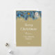 Difunde la alegría de la temporada con esta elegante tarjeta navideña azul y dorada. Con ramas de pino azules adornadas con adornos, estrellas brillantes y un cálido fondo dorado, esta carta irradia alegría navideña. Personalizable total con el nombre y el año de su familia, es la manera perfecta de enviar sus más sentidos deseos a sus seres queridos. Haga que sus saludos de vacaciones sean inolvidables con este impresionante diseño