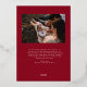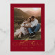 Esta elegante tarjeta de Navidades cuenta con una sola foto enmarcada por un rico fondo verde, lo que le da un ambiente de vacaciones clásico. El saludo "Feliz Navidad" está impregnado de Relieve metalizado en oro o plata brillantes, añadiendo un toque lujoso y festivo al diseño. Los acentos de Relieve metalizado captan la luz de forma bella, creando un impresionante contraste con el fondo rojo profundo. Perfecto para enviar saludos de vacaciones personalizados, esta tarjeta combina la elegancia moderna con el encanto de los Navidades atemporales. En la parte de atrás, hay espacio para un mensaje sincero que haga la tarjeta aún más especial.
