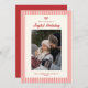 Para la familia, esta temporada de Navidades. Esta tarjeta de felicitación roja y blanca "Joyful Holiday" presenta un elegante fondo a rayas. Esta tarjeta de felicitación puede ser personalizada con la inclusión de su propia elección de foto y elección de texto en la parte inferior del diseño. Esta tarjeta de saludo es colorida, luminosa, elegante y elegante. Es la tarjeta de saludo ideal para la familia que este Navidad.