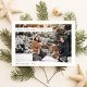 Celebra la alegría de la temporada con esta tarjeta de moda de Navidades blancos y verdes. Con dos encantadoras fotos familiares enmarcadas en un diseño rústico y minimalista, esta tarjeta capta la calidez de los Navidades. La elegante caligrafía complementa el paisaje nevado, creando un ambiente sencillo pero atemporal. Perfecto para enviar cálidos deseos a amigos y familiares, esta tarjeta doble de vacaciones ofrece un toque moderno y sofisticado con espacio para un saludo personalizado en la parte trasera. Comparta sus momentos de amor y exprese la belleza de la temporada con un diseño único y elegante, elegante y acogedor.